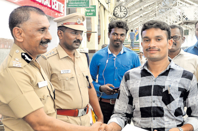 தொடர்வண்டி, கடற்கரை நிலையத்தை வந்தடைந்ததும் இளம்பெண்ணையும், அந்த வாலிபரையும் கடற்கரை ரெயில்வே பாதுகாப்புப்படை காவல்துறையிடம் சிவாஜி ஒப்படைத்தார்.