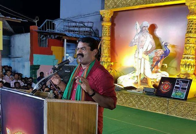 இயற்கையோடு இணைந்து, இசைந்து வணங்குவது தமிழர் வழிபாடு. அதைத் தான் நாம் தமிழர் கட்சி கையில் எடுத்துள்ளது. நாம் தமிழர் கட்சி சாதி, மதத்தைப் பார்க்காது. உலகில் முதலில் தோன்றியது மொழி தான். அதனால் தான், மொழியைத் தூக்கிப் பிடிக்கிறோம்.