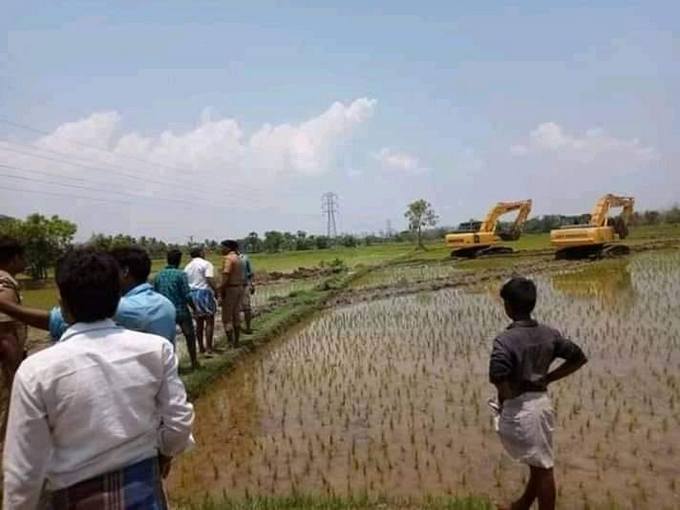 வயல் வெளிகளில் ராட்சத குழாய்கள் பதிக்கும் போது, அந்த நிலப் பகுதிகள் கடுமையாக சேதப்படுத்தப்பட்டுள்ளன. இதுதொடர்பான புகைப்படங்கள் சமூக வலைத்தளங்களில் வெளியாகி, பெரும் அதிர்ச்சியை ஏற்படுத்தியுள்ளன.