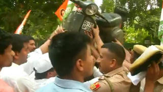 நிதின்கட்கரி வீட்டில் இரு சக்கர வாகனத்தைத் தூக்கி வீசிப் போராட்டம்
