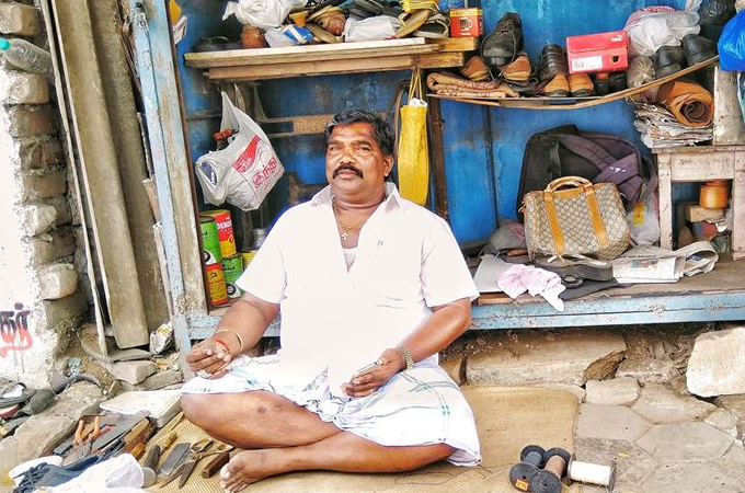 ஒரு சிறிய நடைமேடையின் செருப்புத் தைக்கும் கடை.