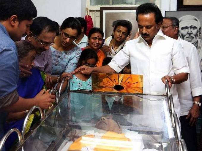 அவருடைய மகனும் திமுகவின் செயல்தலைவருமான ஸ்டாலின் தன் கைப்படக் கடிதம் ஒன்றை எழுதி ட்விட்டர் மற்றும் ஃபேஸ்புக்கில் வெளியிட்டுள்ளார்.