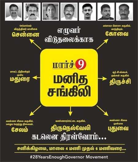 இந்தக் கோரிக்கையை வலியுறுத்தி இன்று மாலை 4 மணி முதல் ஆறு மணி வரை (மார்ச் 9,2019) நடைபெறவிருக்கிற மனிதச் சங்கிலிப் போராட்டத்தில் பங்கெடுக்குமாறு நாம் தமிழர் கட்சி, தமிழர் தேசிய முன்னணி, தமிழ்த்தேசியப் பேரியக்கம் உள்ளிட்ட பல்வேறு தமிழ்த்தேசிய அமைப்புகள் வேண்டுகோள் விடுத்திருக்கின்றன.