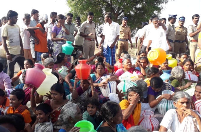 இதுதொடர்பாக ஊடகங்களிடம் பேசிய கிராம மக்கள், “கூட்டுக்குடிநீர் திட்டத்தின் மூலமாகத் தண்ணீர் கிடைக்கும் என்று சொன்னார்கள். ஆனால், இன்றுவரை தண்ணீர் வரவில்லை. இது சம்பந்தமாக அதிகாரிகளை எத்தனையோ முறை சந்தித்தும் எந்தப் பலனும் இல்லை. அதனால் தான் மோடி பிரசாரத்தின்போது போராட்டம் நடத்தினோம். அப்போதாவது எங்கள் பிரச்னை அவர்களுக்குப் புரியட்டும். எங்கள் கஷ்டம் தெரியட்டும்” என்றனர் ஆவேசமாக. சாலை மறியலால் போக்குவரத்து கடுமையாகப் பாதிக்கப்பட்டது. காவல்துறையினர் அவர்களை சமாதானம் செய்தனர். இருந்தபோதும், காலிகுடங்களுடன் சாலை ஓரத்திலேயே மக்கள் காத்திருக்கின்றனர். இதனால் அப்பகுதி பரபரப்பாக காட்சியளிக்கிறது.