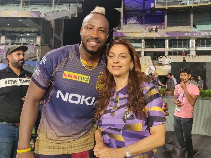 கொல்கத்தாவின் அபார வெற்றிக்குக் காரணமான ஆந்த்ரே ரஸ்செல்லுடன் பலர் புகைப்படம் எடுத்துக்கொண்டனர்.