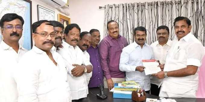 06-02-2020 வியாழக்கிழமை பிற்பகல் 01:30 மணியளவில் நாம் தமிழர் கட்சியின் தலைமை ஒருங்கிணைப்பாளர் சீமான், தமிழக முதல்வர் எடப்பாடி பழனிசாமியை, அவரது இல்லத்தில் நேரில் சந்தித்து நாம் தமிழர் கட்சி சார்பாக கீழ்க்கண்ட கோரிக்கைகளின் மீது உரிய நடவடிக்கை எடுக்கக்கோரியுள்ளார்.