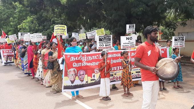 இந்நிலையில், தமிழ்நாட்டிலும், புதுச்சேரியிலும் இந்திய அரசு நிறுவனங்கள் மற்றும் தனியார் நிறுவனங்கள் அனைத்திலும் 90 விழுக்காடு வேலை தமிழர்களுக்கு வழங்க வேண்டும், 10 விழுக்காட்டிற்கு மேல் உள்ள வெளி மாநிலத்தவரை வெளியேற்ற வேண்டும், கொரோனா காலத்தில் தென்னகத் தொடர்வண்டித்துறையில் பணி நியமனம் செய்த 3,218 பேரில் வெளி மாநிலத்தவர்களில் 10 விழுக்காட்டிற்கு மேல் உள்ள அனைவரின் தேர்வையும் இரத்துச் செய்ய வேண்டும், அப்பணி இடங்களைத் தேர்வெழுதிய தமிழர்களுக்கு வழங்க வேண்டும், மற்ற மாநிலங்களில் உள்ளதுபோல் மண்ணின் மக்களுக்கான வேலைச் சட்டத்தைத் தமிழ்நாடு அரசு இயற்ற வேண்டும், அமைப்பு சாரா தொழிலாளர் வேலை வழங்கு வாரியம் அமைத்து உடலுழைப்புப் பணிகள் உட்பட அனைத்துப் பணிகளிலும் தமிழர்களுக்கு முன்னுரிமை வழங்க வேண்டும் ஆகிய கோரிக்கைகளை வலியுறுத்தி, தமிழ்த்தேசியப் பேரியக்கம் சார்பில் திருச்சி பொன்மலை தொடர்வண்டித்துறை தொழிற்சாலை முன்பு கடந்த 11.09.2020 அன்று தொடங்கி 18.09.2020 வரை ஒரு வாரம் தொடர் மறியல் நடத்தப்படுகின்றது.