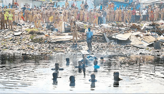 இந்தநிலையில், கடந்த செப்டம்பர் மாதம் முதல், மாநகராட்சி அதிகாரிகள், அப்பகுதி மக்களை விரைவாக மறுகுடி பெயர வேண்டும் என்று அறிவுறுத்தி வந்தனர். இதில் பெரும்பான்மையான குடும்பத்தினர் மறுகுடியமர்ந்துவிட்டனர். நேற்றும் பலர் அரசு உதவியுடன் மறுகுடியமர்வதற்கு சென்றனர். ஆனால் அதில் 15 குடும்பத்தினர் மட்டும் அந்தப் பகுதியை விட்டுச் செல்ல மறுத்து, குடும்பத்திற்கு ஒருவர் வீதம் கூவத்தில் இறங்கி நேற்று போராட்டத்தில் ஈடுபட்டனர்.