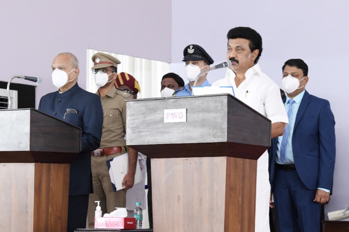 தமிழக முதல்வராக மு.க.ஸ்டாலின் இன்று பதவியேற்றார். அவருடன் 33 அமைச்சர்களும் பதவி ஏற்றனர். முதல்வர் பொறுப்பேற்ற மு.க.ஸ்டாலின் கோட்டைக்குச் சென்று 5 முக்கிய அரசாணைகளில் கையெழுத்திட்டார்.