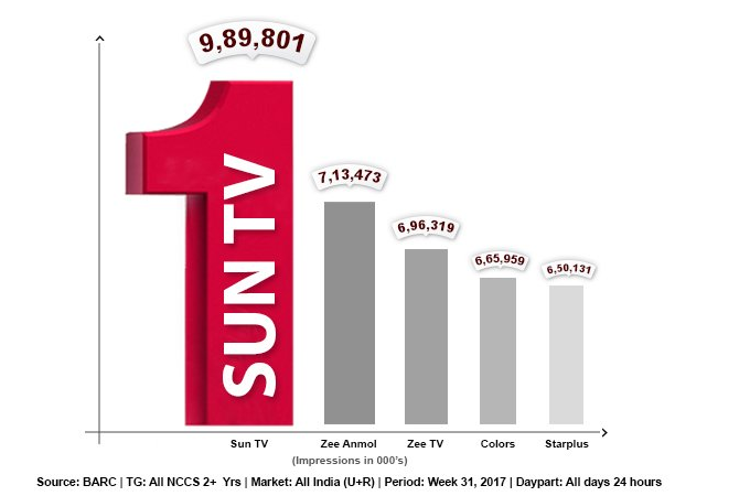 விஜய் தொலைக்காட்சியில் பிக்பாஸ் நிகழ்ச்சி ஒளிபரப்பாகத் தொடங்கிய சில நாட்களிலேயே,தமிழில் வருகிற எல்லாத் தொலைக்காட்சிகளையும் விஜய் தொலைக்காட்சி முந்திவிட்டது. இனிமேல் சன் தொலைக்காட்சி முதலிடத்தில்...